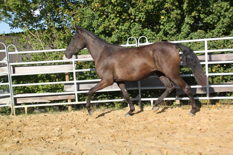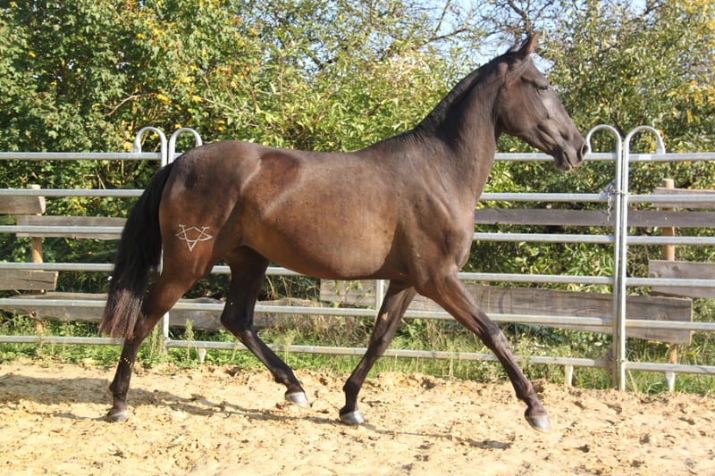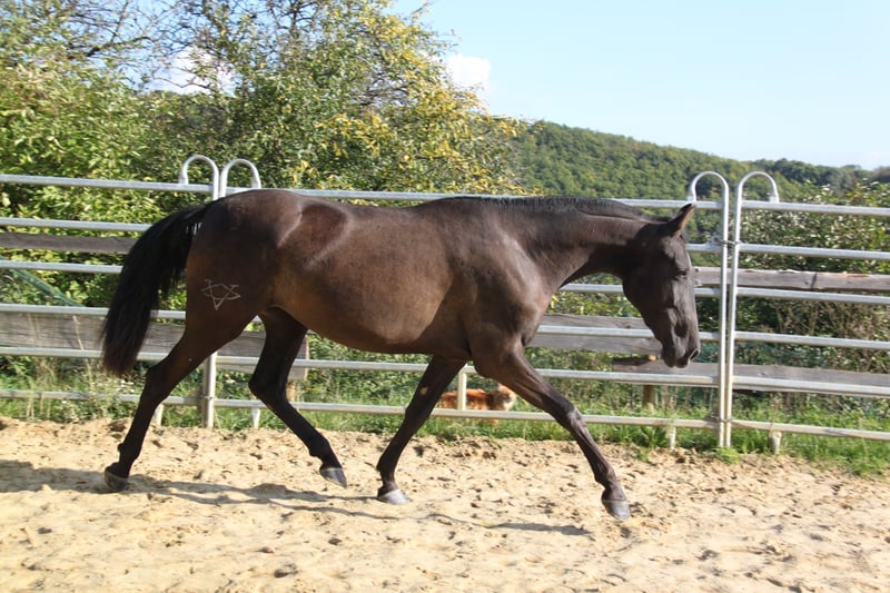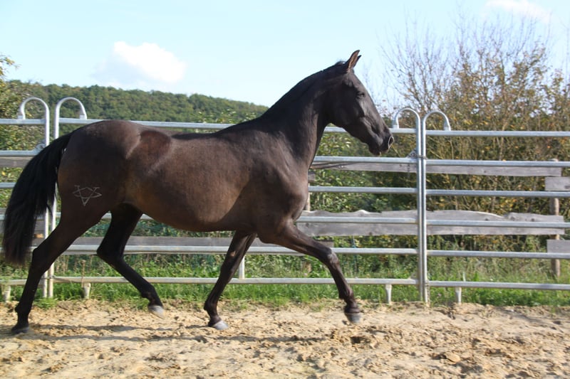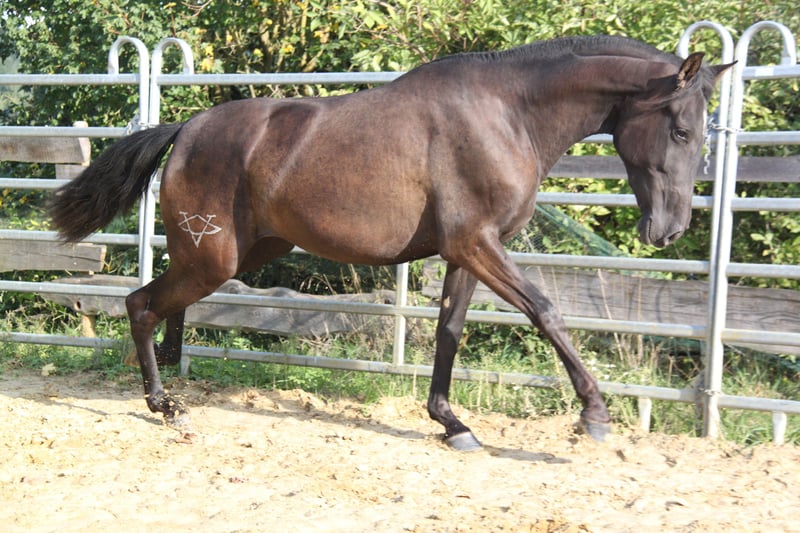 Wegen Bestandsverkleinerung geben wir unsere Afamada in liebevolle Hände ab. Afamada wurde am 14. Oktober 2022 geboren und ist eine sanfte, sensible und sehr anhängliche junge Stute. Bei der Bodenarbeit und an der Longe zeigt sie sich lernbereit und sehr intelligent. Ihr Endmaß schätzen wir auf 1,61 - 1,63 m, aktuell ist sie vorne 1,58 m groß. Sie ist noch im Wachstum und hinten leicht überbaut. Afamada ist ein toller Freizeitbegleiter, aber auch für die Zucht (sie hat volles Papier der ANCCE) sehr interessant. Sie hat ein Pearl-Gen sowie ein kleines "e" (Gen-Code aaEePrl), so dass sie - je nach Auswahl des Hengstes - Fohlen aller Farben bekommen kann! Ihr Vater (letzte Fotos) ist Sohn von Bronco PM und Enkel des berühmten Revoltoso XXIX des renommierten Farbzüchters Paco Marti. Afamada läuft barhuf und hat sehr gute Hufe. Sie steht ganzjährig auf der Weide mit Zugang zum Offenstall und Heu. In der Herde ist sie rangniedrig. Wir wünschen uns für Afamada einen gelassenen Menschen, der ihr die nötige Sicherheit gibt. Dann ist sie ein absolutes Traum- und Verlasspferde, das ihrem Menschen jeden Wunsch von den Augen abliest. Bei ernsthaftem Interesse an dieser tollen Stute sind wir telefonisch unter 01520 433 4848 und per WhatsApp unter 0179 922 4436 erreichbar.