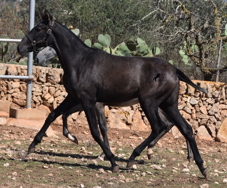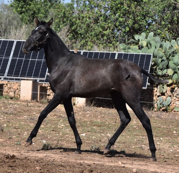 This PRE mare, born in 2023 (Andalusian with ANCCE breed certificate), is bred in the popular FERRERO line and Yeguada Militar on her father's side. This is also reflected in her open-minded and friendly character, which is immediately noticeable even though she is still completely raw. On her mother's side she is bred in modern lines, which is reflected in her size, as the young lady will certainly be 165 cm, if not more! She still has a dark coat, but she will shed. So with every coat change you have a horse with a new look ;) Thanks to the hard, stony ground and her robust attitude, she has very clear legs and good hoof quality. She lives outside 24 hours a day with a friend and is therefore well hardened in all weather conditions (it gets cold and frosty even in winter!). There is the possibility to leave her longer in Mallorca for breeding, but she would be ready to leave and come to you :) Videos and pedigree on request. Her location is Mallorca. I would be happy to organize a foal AKU on site, transport or even her trip, should you come to see her in person. Details on my site or in conversation. Saludos from Spain