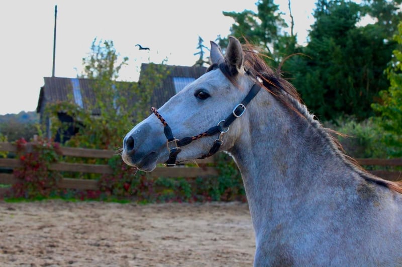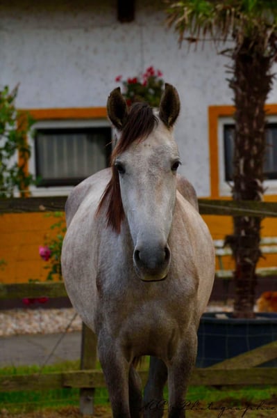 **Sales Advertisement: Beautiful PRE Mare for Sale** We offer a talented PRE mare for sale. **Features:** - **Breed:** PRE (Pura Raza Española) - **Gender:** Mare - **Year of Birth:** 2022 - **Color:** Apple Grey - **Height:** 160 cm - **Suitability:** Dressage This mare impresses with her charming character and her promising abilities in dressage. She is well-mannered, easy to handle, and already shows promising basic gaits. Her friendly nature makes her an ideal partner for riders who enjoy dressage. She has just turned 3 years old and is being cautiously lunged. If you are interested or have any further questions, we look forward to your message!