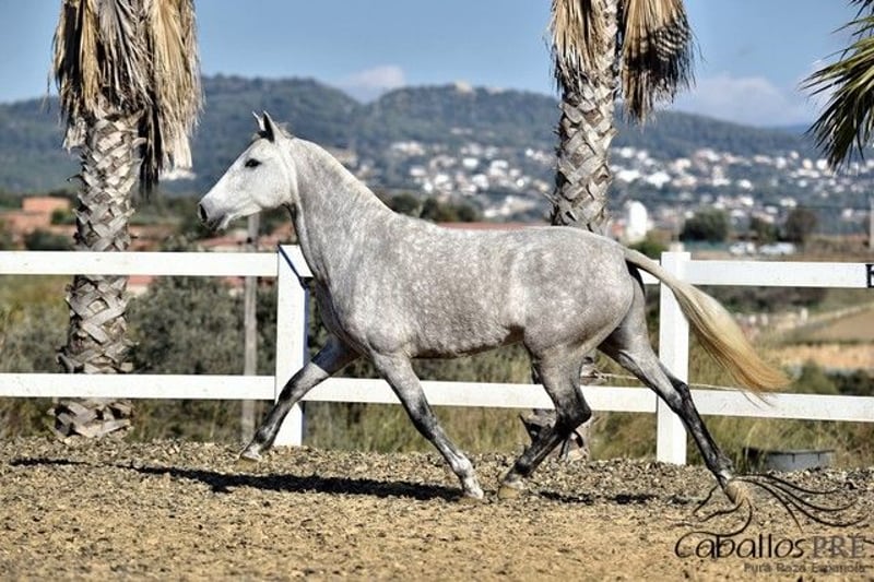 Four-year-old grey mare with an approximately 16.2 hh height. Conformation and appearance are elegant and charming, with a versatile temperament. Simply a wonderful mare with excellent character and correct conformation. She is accustomed to being lunged casually. She boasts an outstanding pedigree and has excellent gaits, making her ideally suited for classical dressage training. A great opportunity for riders who wish to train their own horse. Location: Barcelona, Spain If you would like more information about her, please contact us by phone. We are happy to send videos after a personal conversation. Anonymous inquiries will not be answered. Transport can be arranged worldwide. Viewing is possible at any time by appointment.