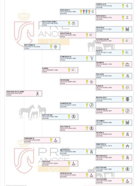 PRE merrie met afstamming Yeguada Guardiola van Educado X en van moederszijde Yeguada de la Escalera. Groot met een schofthoogte van 1,63 en nog in de groei. In het proces van berijden. Nobel in de omgang, borstelen, hoefschoonmaken, douchen, vlechten, en aan de lijn. Merrie met goede bewegingen. Ideaal om te berijden of om een fokkerij te starten vanwege haar AFKOMST. Veterinaire keuring in orde, vaccinaties en ontwormingen, gebit goed, enz. Veterinaire keuring wordt geaccepteerd.