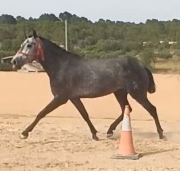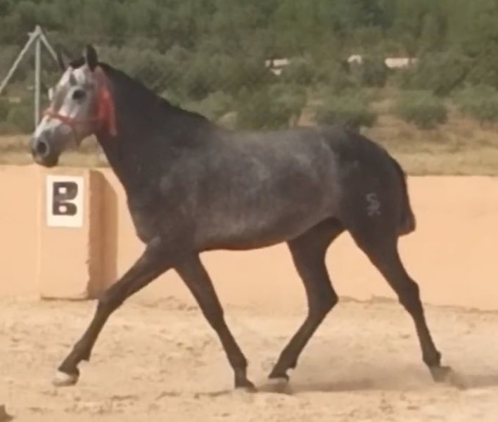 PRE filly with origins from Yeguada Guardiola by Educado X and from the mother’s side Yeguada de la Escalera. Large with a height of 1.63m and still growing. In the process of being started under saddle. Gentle in handling, grooming, hoof cleaning, bathing, and braiding. Filly with good movements. Ideal for breaking in or for starting a breeding program due to her origins. Veterinary check-up is fine, vaccinations and deworming are up to date, mouth is good, etc. Veterinary check-up accepted.
