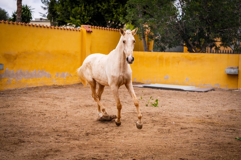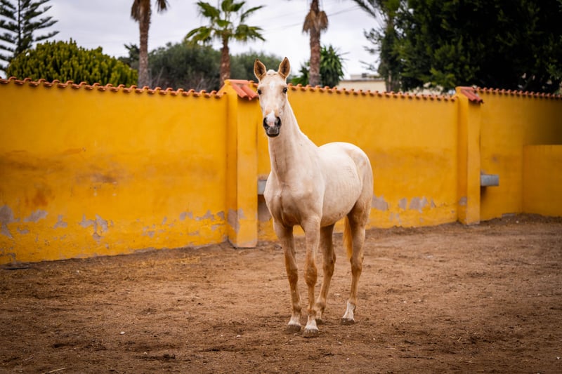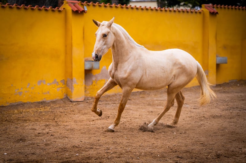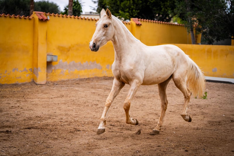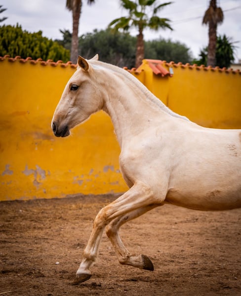 Jungpferd: Kräftige und imposante Palomino Stute mit viel Selbstbewusstsein und Temperament für den Sport oder Zucht geeigent. Sehr gutes Papier mit Wurzeln aus der Yeguada Militar ( Cepellon (2004), Zedimir III ( 2001 ), Remache XIII ( 2002 ) und Lego ( 1991 ) Farbgenetik für die Zucht liegt ebenfalls vor: ggeeAACrC / Mehr Infos auf Anfrage!