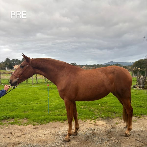 ¡Oportunidad de adquirir una hermosa y joven yegua! Se trata de una PRE (Pura Raza Española), una ejemplar de excelente calidad y belleza. Nació en el año 2022 y actualmente cuenta con una alzada de 166 cm, lo que la hace imponente y elegante. Su color alazán resalta su carácter vibrante y distinguido. Es una yegua ideal para actividades de ocio, perfecta para quienes buscan un caballo confiable y de gran presencia. No pierda la oportunidad de incorporar a su familia o proyecto un ejemplar con estas características y criar caballos PRE de capa diluida. Para más información, no dude en contactarnos.