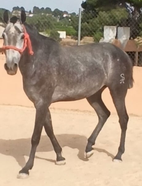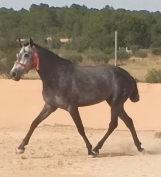 PRE filly with origins from Yeguada Guardiola by Educado X and from the mother’s side Yeguada de la Escalera. Large with a height of 1.63m and still growing. In the process of being started under saddle. Gentle in handling, grooming, hoof cleaning, bathing, and braiding. Filly with good movements. Ideal for breaking in or for starting a breeding program due to her origins. Veterinary check-up is fine, vaccinations and deworming are up to date, mouth is good, etc. Veterinary check-up accepted.