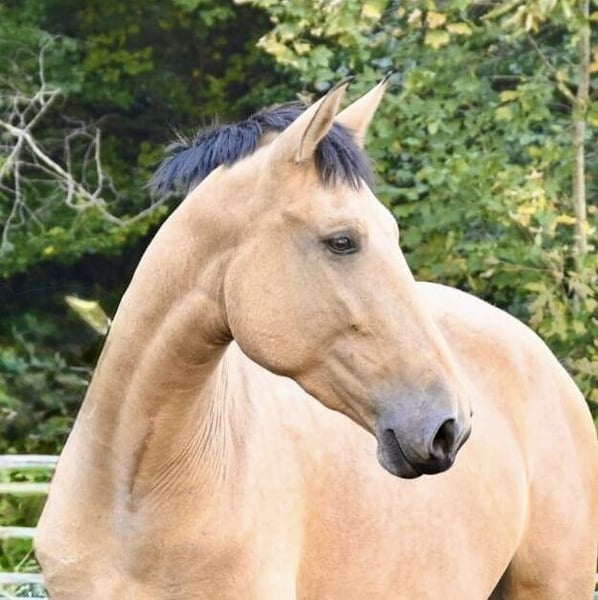 Dans le cadre d'une vente pour le compte du propriétaire : Silueta MAZ… …est une magnifique jument pure race espagnole (Pura Raza Española) de couleur spéciale Falbe (Buckskin/Bayo). En 2025, elle a donné naissance à un poulain mâle palomino avec des yeux verts. La naissance s’est déroulée sans problème et, bien que ce soit sa première pouliche, elle a réagi avec assurance et s’est montrée très attentive en tant que mère. Silueta a eu la chance de grandir dans un groupe en pâture, ce qui la rend très sociable. En 2024, elle s’est proposée comme éducatrice pour les poulains en se montrant douce et patiente. Elle adore vivre en paddock, mais accepte également d’être mise en box la nuit. Depuis 1,5 an, elle est en Allemagne et connaît bien toutes les pratiques locales. Cette année, elle a été doucement entraînée : conformément à sa période de poulinage, elle est actuellement en cours d’apprentissage en trois allures fondamentales. Sous la selle, elle se montre courageuse et obéissante. Une jument d’une qualité exceptionnelle, à la fois équilibrée, intelligente et pleine de bon sens ! Silueta a déjà été approuvée sur la base, avec un indice de sélection élevé (103,95) – elle possède bien entendu un pedigree complet ANCCE. Son sang remonte à Escalera, Yeguada Militar et Paco Martí. Sa lignée explique ses qualités de mouvement, sa taille et, surtout, sa force nerveuse. Elle a été régulièrement vermifugée, vaccinée et présentée chez le maréchal-ferrant (pieds nus). Nous pouvons vous mettre en contact direct avec la propriétaire. Si vous possédez un cheval que vous souhaitez vendre, n’hésitez pas à nous contacter. Nous achetons, prenons en consignation ou commercialisons votre cheval jusqu’à sa vente définitive. Plus d’informations sur www.wow-pferd.de