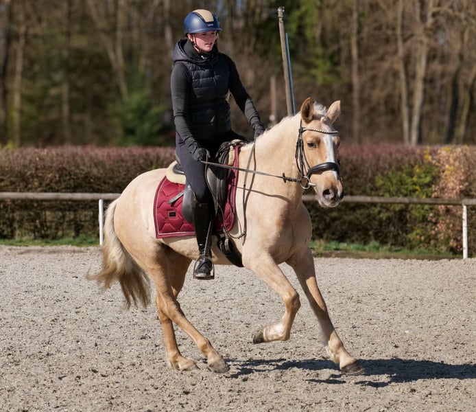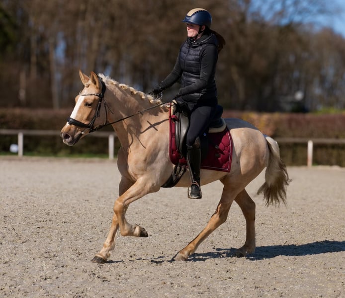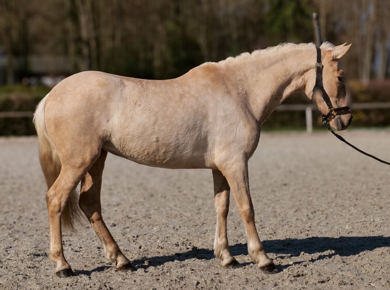 Name: Denia J Rasse: P.R.E Geschlecht: Stute Geburtsdatum: 03.03.2021 Alter: 5 Stockmaß: 1.50m Farbe: Palomino Abstammung: mit Abstammungsnachweis Charakter: neugierig, intelligent, lernwillig, geduldig, gelassen Ausbildung/Eignung: geritten, Freizeit, Dressur, Working Equitation, für Kinder geeignet Geländeerfahrung: nervenstark, zuverlässig, unerschrocken, alleine und in der Gruppe Gesundheit: entwurmt, geimpft, Barhufer, ekzemfrei, Zähne kontrolliert, osteopathisch behandelt Haltung: Box, Offenstall Besonderheiten: sehr sitzbequem, schmiede und verladefromm, herdenverträglich Die genannten Eigenschaften beruhen auf unserer persönlichen Einschätzung und stellen keine zugesicherten Merkmale dar. Preis: 5900 (Bruttopreis) Haben wir ihr Interesse geweckt? Um Ihnen einen besseren Eindruck von Denia zu geben, senden wir Ihnen sehr gerne Ihr Reitvideo zu. Selbstverständlich stehen wir Ihnen für eine ausführliche Beschreibung des Pferdes, persönliche Beratung und zur Beantwortung aller Ihrer Fragen auch telefonisch zur Verfügung. Bitte schreiben Sie uns hierfür jederzeit eine WhatsApp Nachricht, oder rufen unter folgender Telefonnummer an: +49 15119487595 Unsere Telefonzeiten sind täglich von 7:00 - 13:30 sowie ab 20:00Uhr. Wir freuen uns über Ihre Kontaktaufnahme! Eine klinische oder Röntgenologische Ankaufsuntersuchung kann gerne vom Tierarzt Ihrer Wahl durchgeführt werden. Natürlich kann Denia sicher und komfortabel in ihr neues Zuhause geliefert werden. Wir kümmern uns um alle notwendigen Vorbereitungen und den Transport, damit Ihr neues Pferd stressfrei, gut betreut, versichert und wohlbehalten im neuen Zuhause ankommt. Zurzeit präsentieren wir eine sorgfältig ausgewählte Vielfalt an Verkaufspferden. Bei uns finden Sie garantiert Ihr Traumpferd. Besuchen Sie uns auch gerne auf unserer Homepage unter: www.marvinsroyalhorses.de. Sehr geehrte Kunden, gerne stellen wir Ihnen unsere Pferde vor und führen, putzen, satteln, longieren, Bodenarbeit sowie Probereiten in der Reithalle, auf dem Platz oder im Gelände ist Ihnen möglich, um Ihr neues Familienmitglied näher kennenzulernen. Dieses kostet für ein Pferd 40€, für jedes weitere 30€ und wird beim Kauf wieder erstattet. Unsere Adresse lautet: Grube Ferdinand 50 53577 Neustadt Wied Google Maps: marvinsroyalhorses