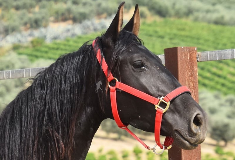Caractère aimable, à l'état brut, vit dehors avec d'autres juments, bons mouvements et bonne lignée, Ascendance : Hnos Camacho Benitez, Gonzalo Valenzuela Ruiz, Escalera, l'arrière-arrière-grand-père Obcecado est qualifié www.elegante-andalusier.com