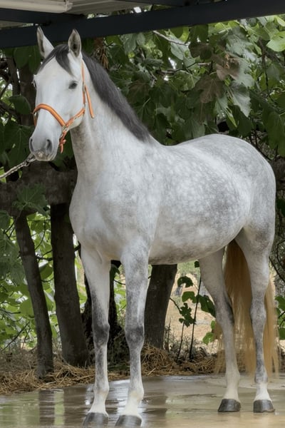Wij presenteren u deze prachtige PRE-ruin, met slechts enkele maanden training, die vanaf het begin al zeer goed vordert. Wat meteen opvalt, is haar ongewone grootte voor een PRE, en ze beschikt over een atletisch, schoon en functioneel lichaam. Vanaf het begin toonde ze een uitzonderlijke instelling: een opmerkelijk karakter, een open geest en een verlangen om samen te werken. Ze neemt alles wat haar wordt aangeboden gemakkelijk en zonder spanning op, wat ons aanmoedigt om rustig verder te bouwen en goede resultaten te behalen. Ze is een merrie met duidelijke kwaliteiten om uit te blinken in de sport, in handen van een ruiter die haar zal begeleiden en haar vooruitgang stap voor stap zal consolideren. Een merrie om het proces te benutten en te groeien. IberHorse: Wij werken met een kleine, bewezen selectie. Als deze merrie aansluit bij wat u zoekt, neem dan contact met ons op voor een gesprek of om een bezoek te plannen en haar in actie te zien.
