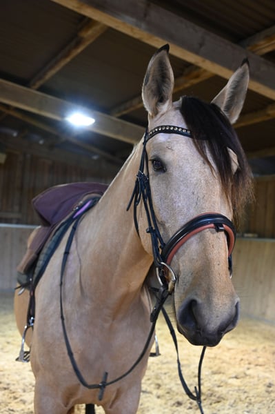 Silueta MAZ ist gekört und angeritten, sie ist eine PRE Stute die am 29.03.2021 geboren ist. Sie hat drei sehr gute GGA vor zuweisen. Ihr Stockmass beträgt 169cm. Sie stammt aus der Zucht von Junan Martos, eine Zucht der PREs Züchtet, in Sonderfarbe für den Dressursport. Er ist bekannt für eine sehr hore Qualität der Pferde, die kräftig und im Barocken Adel stehen und gross gewachsen sind. Alle Pferde aus der Zucht haben einen guten, ausgeglichen und klaren Charakter. Beide Eltern Seiten von Silueta sind auf Escalera-Linien und Yegada Militar zurück zu füren, Väterlicherseits ist hinten ein Hengst von Paco Marti drin, der ebenfalls ein sehr bekannter PRE züchter und sich auf Sonderfarbe spezialisiert hat mit sehr hoher Qualität und einer Gangmechanik für den Dressursport. Silueta MAZ wurde 2024 ANCCE gekört, sie ist eine Bayo Stute ohne weisse Abzeichen, der Gencod ist gg Aa Ee CCr NN. Mutter: Mandulis MAZ, Vater: Orión MAZ Gerne stellen wir Ihnen von Mo.-Sa die Pferde vor, ein Probereiten auf dem Platz oder im Gelände, Longieren und Bodenarbeit ist ihnen möglich, um ihr Traumpferd näher kennenzulernen. Dieses kostet 40€ pro Mal und wird beim Kauf wieder erstattet. Gebuchter Reitunterricht werden nicht Rückerstattet.