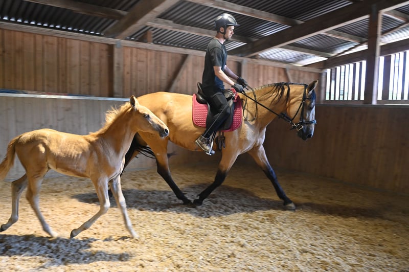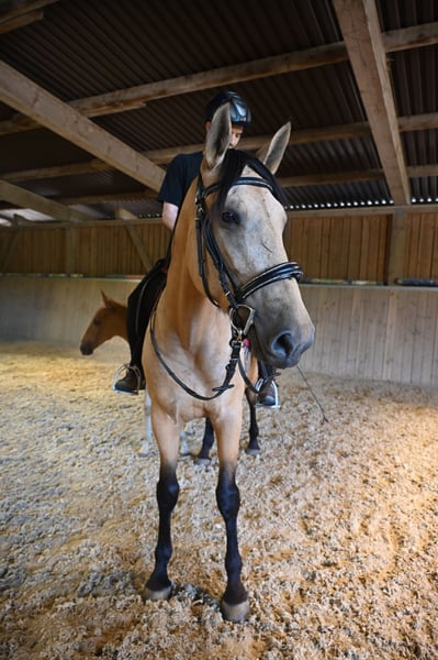 Silueta MAZ con il puledro maschio Lozano Kubny al seguito, di colore Palomino, nato il 29.04.2025. Riceverà documentazione ANCCE completa, suo padre è Silenzio MAZ. Silueta MAZ è approvata e montata, è una cavalla PRE nata il 29.03.2021. Ha tre ottimi GGA da dimostrare. La sua altezza al garrese è di 169 cm. Proviene dall'allevamento di Juan Martos, un allevamento di PRE specializzato in colori particolari per il dressage. È conosciuto per l'alta qualità dei cavalli, che sono robusti, di nobili linee barocche e di grande taglia. Tutti i cavalli dell'allevamento hanno un carattere buono, equilibrato e chiaro. Entrambi i genitori di Silueta appartengono alle linee Escalera e Yegada Militar; da parte paterna c'è un stallone di Paco Marti, un noto allevatore di PRE specializzato in colori particolari, con qualità molto alta e meccanica di movimento per il dressage. Silueta MAZ è stata approvata ANCCE nel 2024, è una cavalla Bayo, il codice genetico è gg Aa Ee CCr NN. Madre: Mandulis MAZ, Padre: Orión MAZ Siamo lieti di presentarvi i cavalli da lunedì a sabato, è possibile provare a montare in campo o in natura, lavorare in longia e fare lavoro a terra, per conoscere meglio il vostro cavallo dei sogni. Questo costa 40€ a volta e sarà rimborsato al momento dell'acquisto. Le lezioni di equitazione prenotate non sono rimborsabili.