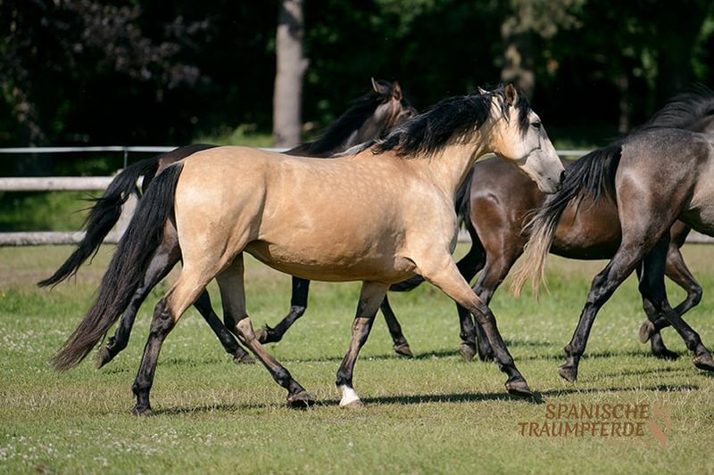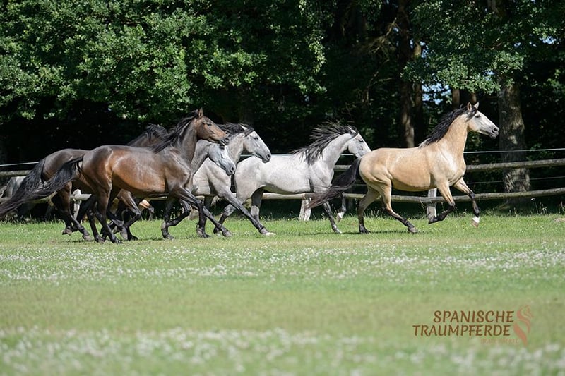 ✨QATAR SH✨ to niezwykle zabawna, zadziorna i bardzo kochająca klacz rasy PRE, która z Traventhal pragnie znaleźć swojego wymarzonego człowieka. Jej czarująca siostra RUSIA SH już stąd znalazła swój na zawsze dom. QATAR imponuje swoim bardzo harmonijnym i barokowym eksterierem oraz bardzo miłym i przyjaznym charakterem. W odpowiednim wieku QATAR jest na początku swojego szkolenia jako koń jeździecki. Zna siodło i ciężar jeźdźca, a pod jeźdźcem zachowuje się grzecznie i delikatnie. Niezależnie od tego, czy w ujeżdżalni, na terenie zewnętrznym czy na polu do skoków, QATAR SH w każdej sytuacji jest koniem o mocnych nerwach i przyjemnie pewnym siebie, zachwycając swoimi wygodnymi chodami. Piękna klacz dorastała w Hiszpanii w stadzie, mając dużo kontaktu z rodziną hodowcy. QATAR przekonuje zatem dobrym zachowaniem społecznym i bezproblemowym podejściem. Zdjęcia rentgenowskie są dostępne. Dalsze filmy można obejrzeć na mojej stronie internetowej: www.spanische-traumpferde.de