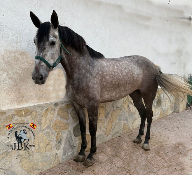 An impressive personality and excellent gaits define this PRE mare. Well-trained in all gaits, suitable for trail riding and road work, she is calm, confident, and very cooperative. Manzanita has no mare-like vices, is not bossy, and is friendly towards her herd mates and humans alike. An impeccable horse. She comes from top-quality bloodlines: her sire is the world champion Romero de Trujillo. Grandfather Engañoso IV is one of the few elite licensed stallions in PRE breeding. Her lineage is further complemented by lines from Granda Losada, Bohorquez, and Yeguada Militar. A lady with whom it will be a pleasure to continue working. Currently measures 1.61 meters.