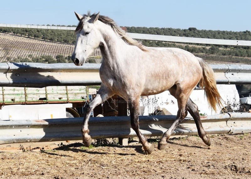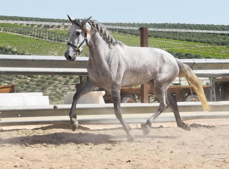 bon caractère, brut, a été débourré récemment, grand, bonnes allures et origines, origines : Cardenas, Yeguada Militar, a plusieurs ancêtres qualifiés www.elegante-andalusier.com