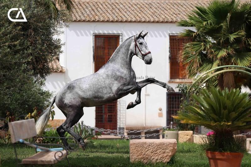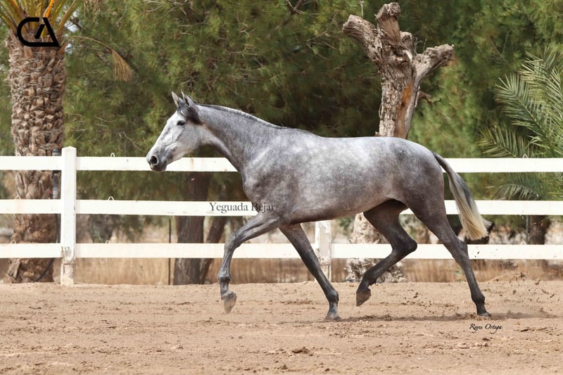 Itala de Tacon is a beautiful gray mare, feminine and with the typical beauty of the Spanish horse. In her family tree we can find importat genetic lines. On her sire side, Italo de la Vega is son of Nero II by Alonso Moreno de la Cova, Improver Breeding Stock, by Inédito (Improver Breeding Stock), and Itala V by Yeguada Los Retamales, by Digital (Improver Breeding Stock). On her dam side, Fer Barroca, is the daughter of two legendary exemplars that marked the foundation of Yeguada Ferrero, such as: Mañoso II and Fer Peseta.