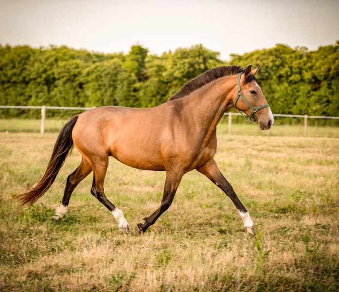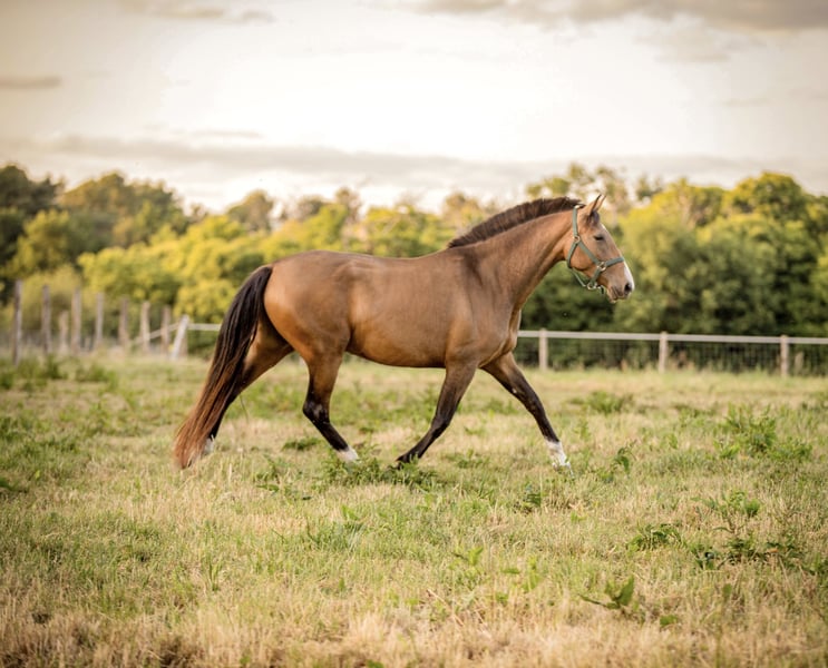 🌟Nazareth 🌟 Jument PRE(pure race espagnole ) APTA, pleins papiers. C’est une jument isabelle de 7 ans, de modèle baroque, qui toise environ 1m58/60 Nazareth nous a donné deux magnifiques pouliches au mental exceptionnel. Côté caractère, elle est très gentille et proche de l’homme, même si elle peut parfois avoir un petit tempérament de “jument”, toujours sans méchanceté. Nous la proposons principalement comme poulinière, mais elle pourrait également être remise au travail sous la selle. Elle a été débourrée juste avant sa mise à la reproduction, et pourrait devenir une excellente jument de loisir ou de dressage car elle a de très jolies allures . Pas peureuse et bien dans sa tête . Jument rustique, elle vit en troupeau au pré 24h/24. Elle n’apprécie pas la vie en box et n’a, à ce jour, présente aucun problème de santé. Marchand et curieux s’abstenir Sarthe (72)