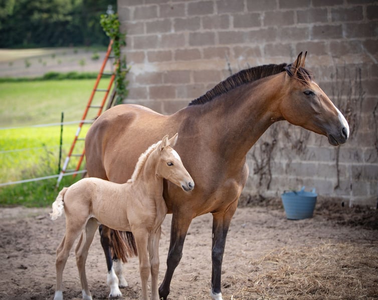 🌟Nazareth 🌟 Mare PRE (pure Spanish breed) APTA, full papers. She is a 7-year-old isabella mare, of baroque build, standing approximately 1.58/60 m. Nazareth has given us two beautiful fillies with exceptional temperaments. In terms of character, she is very gentle and close to humans, although she can sometimes have a little bit of a "mare" temperament, always without malice. We are primarily offering her as a broodmare, but she could also be brought back into work under saddle. She was backed just before her breeding and could become an excellent leisure or dressage mare as she has very nice gaits. Not fearful and well-balanced. A rustic mare, she lives in a herd in the pasture 24/7. She does not appreciate box life and has, to date, shown no health issues. Traders and curious people, please refrain. Sarthe (72)