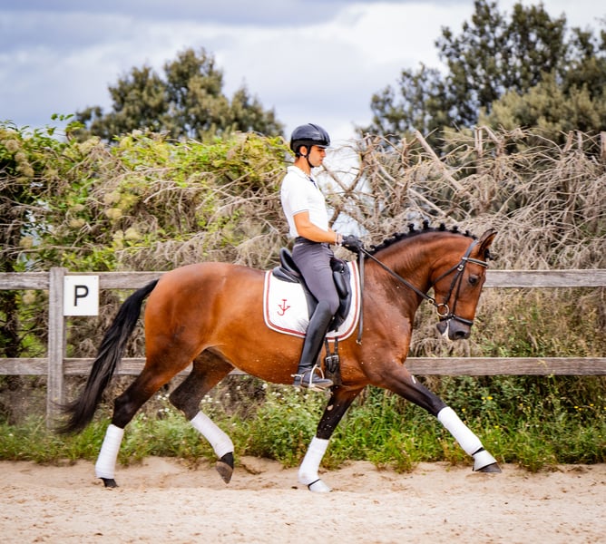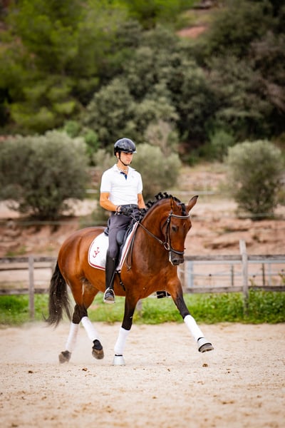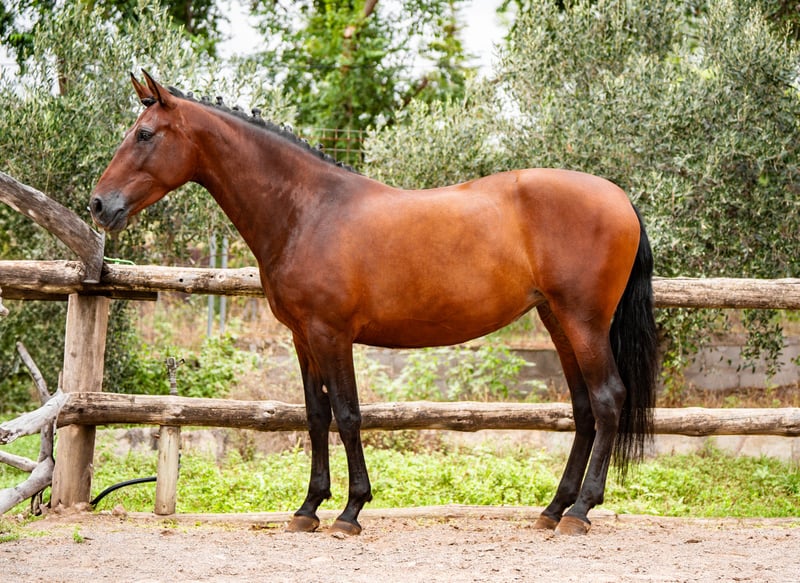 6 Jahre alte PRE-Stute mit der Abstammung ESCALERA. Eingetragen im ANCCE-Stutbuch als Basiszuchtstute. Ihr Vater LATINO JAV wurde als "Jungvererber empfohlen - morphologisch verbessernd" ausgezeichnet. Hervorragende Zucht- und Dressurperspektive, da sie über sehr gute Bewegungen mit hervorragendem Trab verfügt. Bereits mit Turniererfahrung: hat erfolgreich in Dressurprüfungen der Klasse 4 und 5 Jahre teilgenommen (mit Ergebnissen um die 70%). Ausgezeichneter Charakter. Röntgenbilder vorhanden. PIRO FREE - kann in die USA reisen. Das Pferd befindet sich in Spanien.