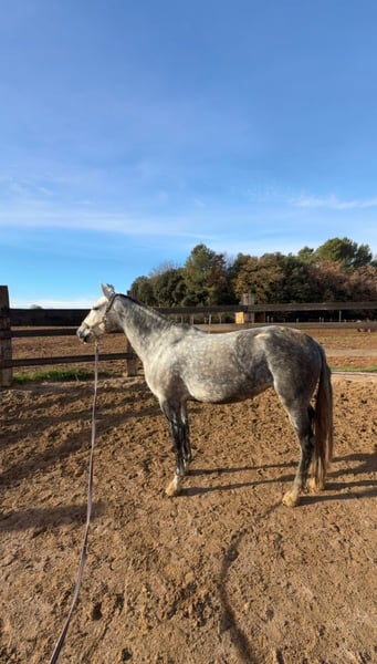 Beautiful PRE mare for sale named Triana, daughter of the champion Romero de Trujillo, with all papers in order. She is 7 years old and stands at 1.62 meters. She is known for her excellent attitude, nobility, and very good temperament. The mare is hitched to a limonera cart and is trained to ride at the three gaits and on trails, always demonstrating a calm head, balance, and ease of work. She possesses great qualities and potential, making her an excellent candidate for classical dressage or working equitation. She has never been covered by a stallion, which also makes her an interesting prospect for future breeding. Her training has been carried out in a calm and progressive manner, always respecting her character. ✔ Noble and manageable temperament ✔ Hitched to a limonera cart ✔ Trained to ride ✔ Good sporting potential ✔ All documentation in order A very versatile mare with high quality and many possibilities for leisure or competition.