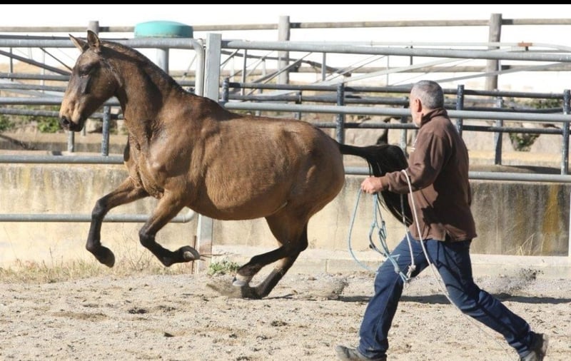 Pregnant PRE broodmare seeking her person. She is currently in foal to a cremello stallion. Born in April 2017 and stands approximately 15.7 hands. The mare has an incredibly beautiful appearance. Her offspring are also stunning. She is familiar with the blacksmith and can be approached, otherwise she is quite raw.