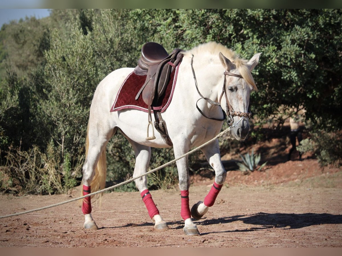 BURLONA, bij ons BELLA genoemd, is een barokmerrie zoals uit een fotoboek! Een compact, evenwichtig gebouwd paard met een goede basis, en natuurlijk haar imposante barokke hals en expressieve gezicht maken haar tot een echt model voor de PRE-ras. Zoals gebruikelijk in Spanje bij merries die rechtstreeks van de fokker komen, heeft ze manen en staartaanzet geknipt. Ze is echter geen exmoor en haar langhaar groeit al weer aan. BELLA overtuigt bovendien door haar bijzonder lieve en warmhartige karakter. Nadat ze enkele jaren in de kudde bij haar fokker heeft gestaan, is ze nu bij mij weer in opbouwtraining en toont ze zich slim, ijverig en leergierig. Ze is gereden in de algemene basisgangen en leert momenteel schouderbinnenwaarts en schouder- en flankwerking. We zijn ook al met haar in het terrein geweest, waar ze zeer zeker is en uitstekend vertrouwd met auto’s, tractoren, honden etc. Ze loopt heel betrouwbaar en veilig onder het zadel en geeft een geruststellend en ontspannen rijgevoel. Geen melanoom bij de schimmel. Volledige papieren van de ANCCE. Locatie Spanje.