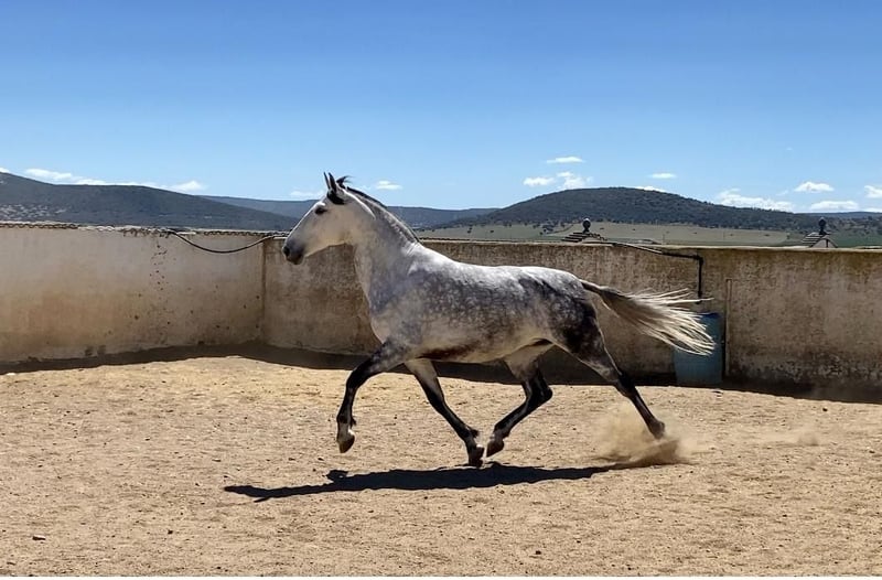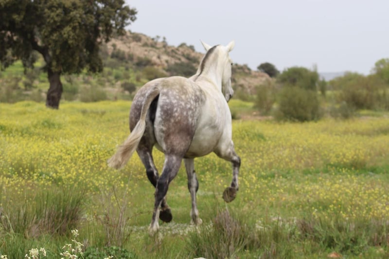 We would like to part with one of our breeding mares due to a change in our breeding program. Pintas is eight years old and completely unused. She is employed as a breeding mare at our stud farm because, in addition to her impressive appearance, she has a pedigree that is truly beyond any doubt. She has not been worked, which, given her character and her affectionate nature, is more of a pleasure than a lot of work. The price is really top because she is in foal. (Photos of the stallion can also be seen here.) If you are looking for a horse for the next 20 years, you really can't go wrong here. She is truly perfect both as a breeding mare and as a riding or leisure horse. We would be happy to assist you with the viewing in Spain if you are interested. We generally do not sell to horse dealers or riding schools. For further questions, I am very happy to assist you in Germany.