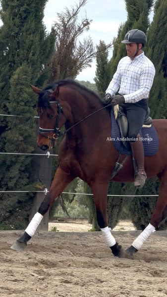 Beautiful PRE Mare x Hannover 9 years old / 1.80 m. Yes, she is a tall girl with an incredible temperament. She is very calm, sweet, and friendly with people! She is ridden, with basic training including half-pass and is very safe. Suitable for a hobby rider and family! For more information, please contact us: Alex Andalusian Horses (+34) 657 314 412 Follow us on our social media! We have over 100 horses available! We organize vet checks, transport, documentation, and more.
