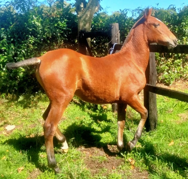 PRE foal, granddaughter of UTRERANO VII (elite) on the father's side and of CARTUJANO LXVIII (Sicab champion) on the mother's side (MFE). Very good character, excellent conformation and movement. For more information, please contact.