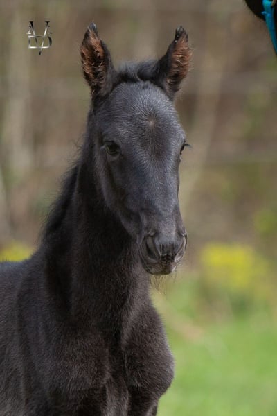 QUERIDA VMD Magnifique pouliche PURE RACE ESPAGNOLE, de robe noire. Querida est née à notre élevage en mars 2026. Elle est issue d'une superbe jument, fille de GIRON, étalon noir par Granjero étalon élite de la race, bien charpentée qui toise 1,65m et d'un étalon par MONITOR DE LA ESPADA qui toise 1,76m. QUERIDA sera grande et bien charpentée, une très belle pouliche qui conviendra pour le loisirs, dressage etc.. Elle partira à jour de vermifuges, vaccins, parages. Elle est manipulée régulièrement, marche en main, donne ses pieds etc.. Elle est à réserver pour le sevrage, possible à partir de septembre 2026. Informations nous contacter