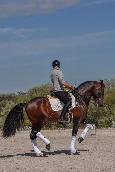 Caballo de escuela PRE semental sin castrar, nacido en 2016, que realiza casi todos los ejercicios de Gran Premio.