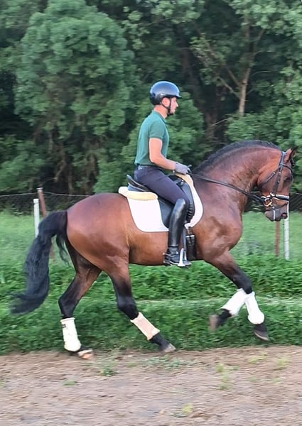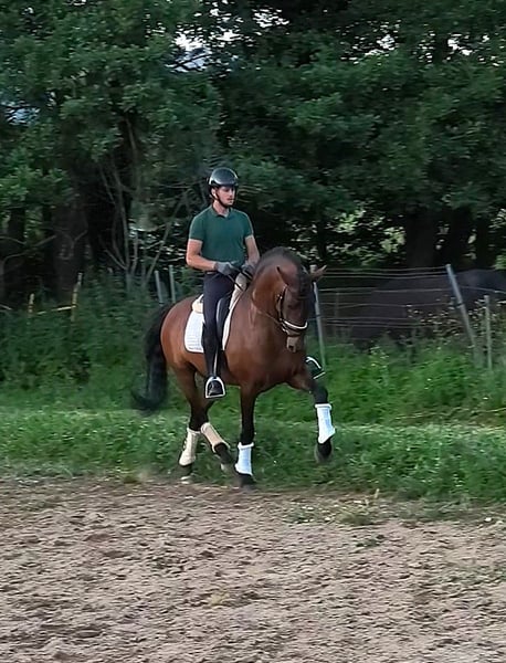 Dobra budowa ciała. Dobre ruchy. Predyspozycje do ujeżdżenia. Ma dobry charakter i jest przyjemny w jeździe. Obecnie wykonuje wszystkie ćwiczenia San Jorge. Odpowiedni dla każdego jeźdźca. Ma potencjał do dalszego rozwoju w ujeżdżeniu. Nigdy nie był kontuzjowany. Wolny od piro. Po więcej informacji lub obejrzenie filmu, prosimy o kontakt.