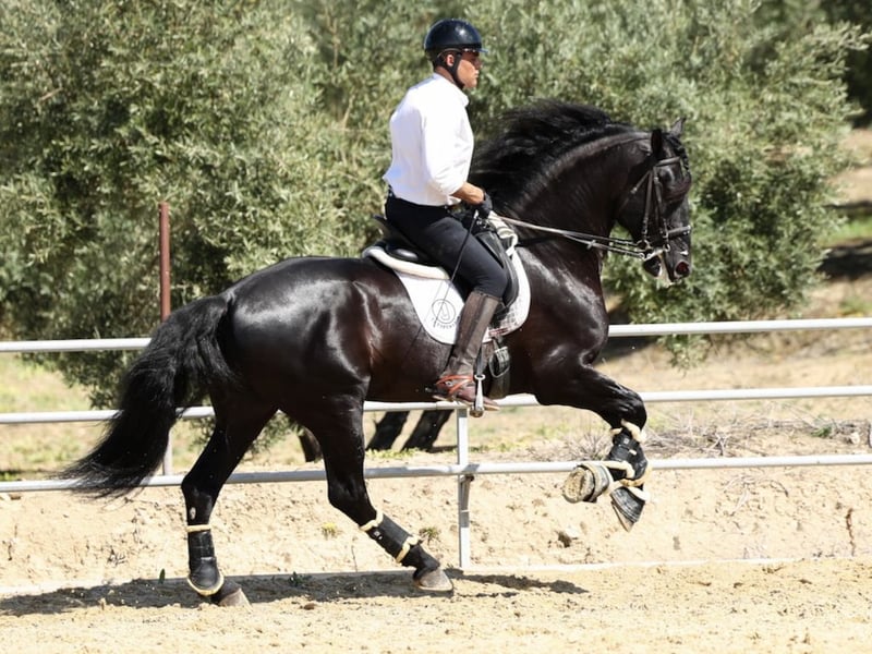Wenn Sie auf der Suche nach einem auf San Jorge-Niveau gerittenen schwarzen Hengst mit Größe, Schönheit und guten Bewegungen sind, könnte dieser Hengstsohn von Trovador de Valdeolivas mit einer Größe von 177 cm eine gute Wahl für Sie sein. In schwarzen Umhängen gibt es nur sehr wenige Hengste mit dieser Eleganz an Hals und Gesicht, Eigenschaften, die ihre Produkte erben. Deckungsgebühr: 1.200 € + Tierarzt- und Versandkosten.