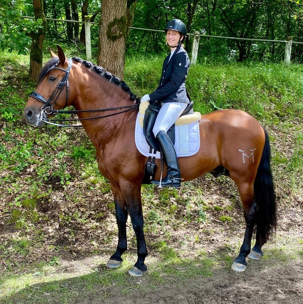 Uruguayo XXVII PRE / Stallion / Born 24.11.2014 / Dark Brown / 16.1 hh Sire: Academico VII, Dam: CRIOLLA III, Grandsire: MEJICANO XXV Beautiful, well-muscled dark brown PRE stallion with excellent basic gaits, abundant tail and mane. Training Solidly and calmly trained for dressage, leisure riding, trail riding, and working equitation. Trained up to M level with prospects for S, piaffe introduced. Experienced in competitions (FN events), presented and placed from A to M classes. First experiences in working equitation. Spanish walk initiated, confident on trails (alone and in groups). Character / Temperament A stallion with impeccable character, completely free of stallion manners. He is led to the paddock with another stallion and remains undisturbed among the mare herd. Very affectionate, well-behaved, and easy to handle, also with children. Willing to work, intelligent, quick to learn new things, and enjoys variety. A family horse from the very best circumstances. Health Guayo is properly vaccinated and dewormed (latest based on a fecal analysis). Currently barefoot behind, front with synthetic shoes (he was previously shod four times normally). A health check (AKU) can be performed upon request. Lodging Currently stabled in individual boxes with geldings, stallions, and mares in close proximity. Daily turnout on paddocks and pastures. Location Germany / 64380