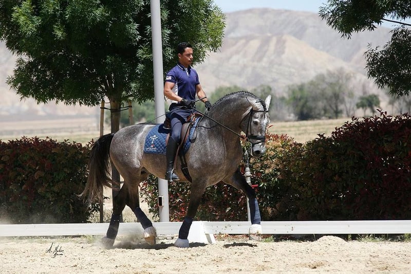 Trainero de Trujillo exemplifies the pinnacle of the PRE spectrum, hailing from Miguel Bohorquez’s renowned breeding program. Linebred on the influential Albero II, a cornerstone of the Spanish Olympic team, he also carries the prestigious bloodlines of Ganador VIII and Leviton, cementing his elite genetic legacy. With an exceptional genetic index score of 116.14, Trainero stands as a paragon of the Pura Raza Española (PRE) breed. This 17H (1.73m) stallion is a proven ANCCE champion in both Spain and the USA, earning accolades in limited showings and securing his place among the breed’s finest. Trainero is a rare opportunity to elevate your breeding program or competitive pursuits. His noble heritage, top-tier bloodlines, and championship show record has positioned him as an ideal candidate to advance your show string or produce world-class offspring in the breeding shed. He is heterozygous, carrying the bay and grey genes, to produce a broader spectrum of color. Trainero de Trujillo was selected, imported and shown by the TRUJILLO Team, the top breeder in the USA. Trainero brings the tier one quality to your breeding program, from his noble heritage, top bloodlines and stud farm, and proven championship titles. He stands as a champion, and now is your opportunity to own a living legend—Trainero de Trujillo, a stallion destined to leave an indelible mark on the PRE world. Located in No. California. LINK TO ANCEE page: https://www.lgancce.com/lgpreancce/asp-publico/arbolGenealogicoPRE/ConsultarArbolGenealogicoPRE.aspx?ID=CbbWU9eBW98=