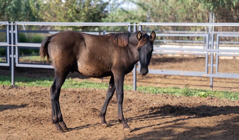 Breed: PRE Type: Baroque Horse Gender: Stallion Age: 7 months Color: Smokey Black with Pearl Gene Primary Discipline: Baroque, Leisure Additional Disciplines: Dressage, Working Equitation Breeding Association: Optional with PRE papers (ANCCE) or without Additional Features: - Very baroque build - Curious & people-oriented - Elegant, powerful gaits Currently in a rough condition Healthy, clear-minded Description Lucerus is an extraordinary PRE foal with a rare color gene – a Smokey Black stallion carrying the Pearl gene, giving him a captivating, warm shimmer. He was born this year and is now 7 months old. Lucerus displays daily curiosity, bravery, and an open attitude towards humans. He actively seeks contact, learns quickly, and attentively observes his surroundings. His baroque conformation combines strength with harmonious proportions, and his movements are already impressive for his age: a floating trot, energetic canter, and very good rhythm. In the herd, he is friendly, playful, and social. He is accustomed to electric fencing. Lucerus can be sold with full PRE registration papers – or without, depending on future use and budget. An ideal foal for lovers of baroque lines, breeders interested in rare color genetics, or anyone seeking an exceptionally typy young horse. More information and videos available upon request!