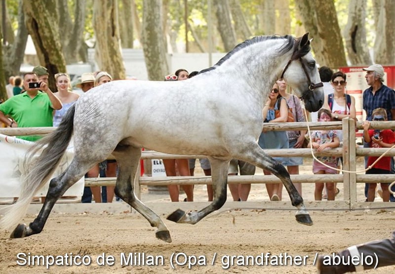 Carácter amable, algo rudo, está afuera con otros potros, grande, buena ascendencia. Pedigree: Pepe Werner, Los Retamales, Millán Herce, Granda Losada. Tiene varias líneas de ancestros calificados. www.elegante-andalusier.com
