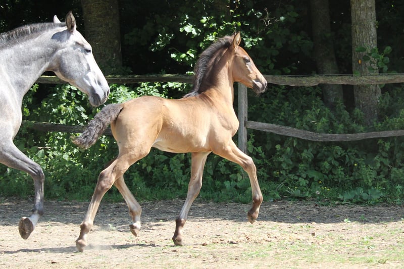 Dalí del Abadia est un très beau poulain étalon Pura Raza Española, né le 19.05.2025. Dalí se distingue par sa construction imposante à seulement 3 mois. Tout comme sa mère, il est d'un tempérament calme et attentif, appréciant silencieusement toute l'attention qu'il reçoit. Il grandit avec ses frères et sœurs dans le troupeau, mais connaît également le licol et a déjà été transporté à plusieurs reprises. Dalí combine plusieurs lignées impressionnantes ; sa mère, Artista Su, est une fille de l'étalon élite Doblón-TR et, du côté maternel, une petite-fille de l'étalon élite Impaciente II. Notre étalon de reproduction, Bien de Scuderia (dernières 3 photos), est un fils du légendaire Poeta de Susaeta. Souhaitez-vous plus d'informations concernant Dalí ou aimeriez-vous découvrir notre élevage ? N'hésitez pas à nous contacter. Vous pouvez également nous retrouver sur notre site web, Facebook et Instagram (Yeguada El Abadia).