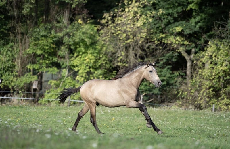 **Verkaufsanzeige: Traumhafter PRE Hengst in Buckskin** Wir bieten einen außergewöhnlichen PRE Hengst zum Verkauf, geboren im Jahr 2024. Dieser wunderschöne Barockhengst besticht durch seine edle Buckskin-Färbung und seinen imposanten Auftritt. **Merkmale:** - **Rasse:** Pura Raza Española (PRE) - **Geschlecht:** Hengst - **Geburtsjahr:** 2024 - **Fellfarbe:** Buckskin - **Typ:** Barock Der Hengst zeichnet sich durch seine sanfte und freundliche Art aus. Er ist gut sozialisiert und zeigt bereits viel Potenzial für verschiedene Disziplinen. Seine elegante Bewegung und sein charmantes Wesen machen ihn zu einem idealen Partner für ambitionierte Reiter und Züchter. Bei Interesse oder für weitere Informationen freuen wir uns über Ihre Nachricht. Besuchen Sie uns gerne, um diesen besonderen Hengst persönlich kennenzulernen!