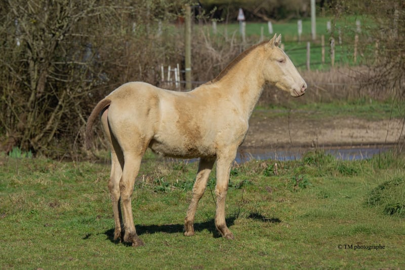 For sale: stunning PRE (Pura Raza Española) foal, Smocky Black Pearl. Up to date with all vaccinations (GT Rhino), deworming, farrier, and osteopath. He is very well handled. He lives in a herd in the pasture. This foal has a calm and composed temperament, is not spooky, and is accustomed to all kinds of situations. He is a very attractive conformation, with a rather round and bony build. He is expected to reach approximately 1.65 meters at the withers. We are a small family-run breeding farm in Oise, where the well-being of our animals is our top priority. Feel free to visit us.
