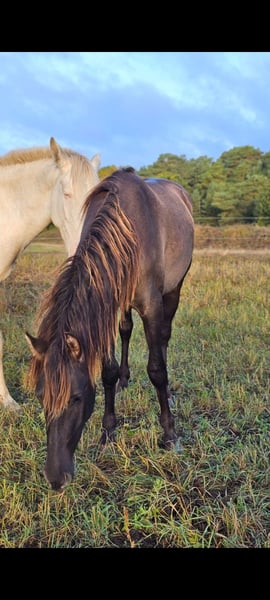 Torror ist in Deutschland geboren und ist sowas von wunderschön, wenn man ihn Live sieht , mit seiner einmaligen Farbe , jetzt schon langer Mähne und seinen tollen Charackter dazu , machen den jungen Hengst einzigartig. Er wird mal ca 158 groß werden . Er kennt den Schmied gibt alle 4 Hufe ohne Probleme. Läuft im Gelände ohne Probleme als Handpferd mit auch spazieren gehen mit anderen Pferden oder ohne andere Pferde ist für ihn alles kein Problem. Er ist die Ruhe selbst. Er ist super verschmust und liebt den Kontakt zum Menschen . Er hat die Farbe Smoke Black Er steht aktuell in einer Jungpferdegruppe und darf hier sein Leben genießen .