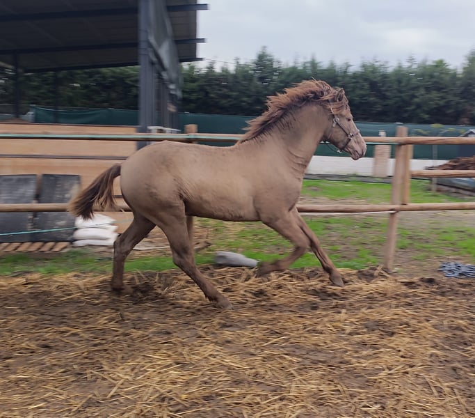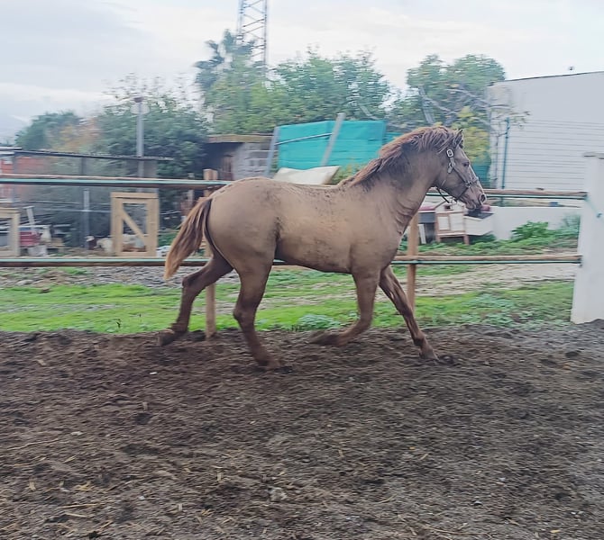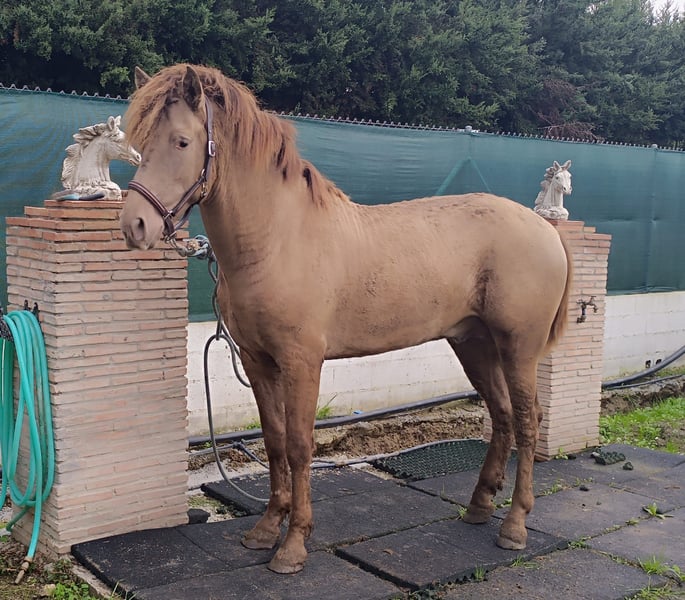 PRE Colt Isabelo, 22 months old, with a lot of bone and a baroque appearance.