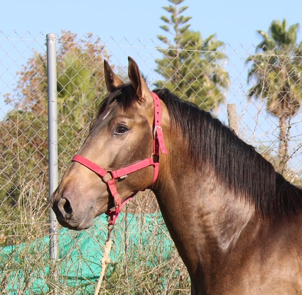 Nativo, geboren 05.04.23, ist der typische PRE, barock, kurz, kraftvoll und dann noch in Sonderfarbe. Er kennt Longe und Sattel, mehr im Moment noch nicht. Nativo ist klar im Kopf, nicht hengstig, manchmal ein richtiger Clown und sehr verspielt. Er hat sich als Fohlen eine Verletzung zugezogen, die aber längst verheilt ist, die Narbe ist rein ästhetisch (siehe letztes Foto). Auf Wunsch kann Nativo zur weiteren Ausbildung bei uns im Beritt bleiben. Eine AKU kann in Auftrag gegeben werden. Der Transport wird international organisiert. Videos auf Anfrage
