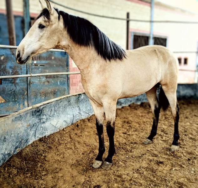 💥 Son of Picasso LH 💥 This stunning young stallion with an impressive pedigree and the rare Bayo color is looking for his FOREVER HOME. He will turn 2 years old in April, with an expected final height of approximately 1.68 m. He is raised appropriately in a herd and is well socialized. He has a very gentle nature and is very friendly towards people. He is correctly built and possesses excellent quality. He is already well-behaved when tied up and stands quietly for grooming. He also tolerates farrier work very well. Leading him on a halter with a lead rope is no problem at all. He could be suitable for dressage, Working Equitation, or leisure riding later on. Possibly even for breeding 🥰 His current X-rays are clear. If you are looking for a promising young horse, he is the right choice. The last picture shows his very sought-after sire, known for his color breeding. If you are interested in this handsome young stallion, please contact me with your phone number so I can get in touch with you as soon as possible. We are happy to arrange transportation. We have a large selection of horses, from foals to Grand Prix level competitors. Standard Spain
