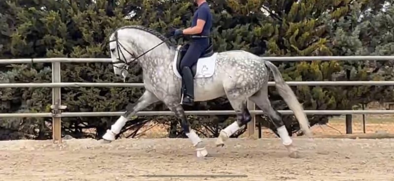 Se vende precioso potro entero PRE de Yeguada la Montaraza con carta (foto adjunta) Nacido a finales de abril de 2023. Tordo. Está entero. Hijo de Átomo de Centurión (últimas fotos). Muy manso, noble y cariñoso. Doma de cuadra y empezando a trabajar a la cuerda. Sabe subir y bajar del Van. Excelentes movimientos. Alrededor de 1,63-1,64 y creciendo. Consulte sin compromiso.