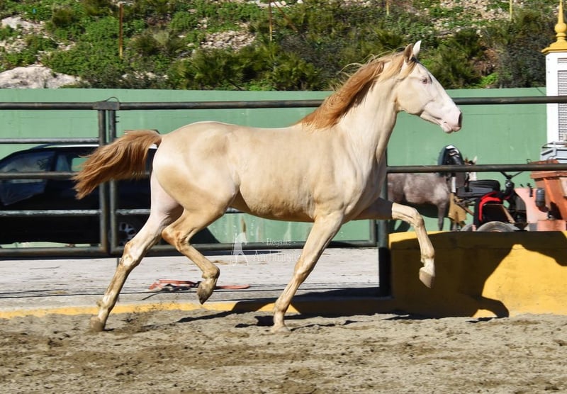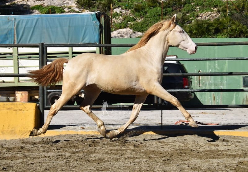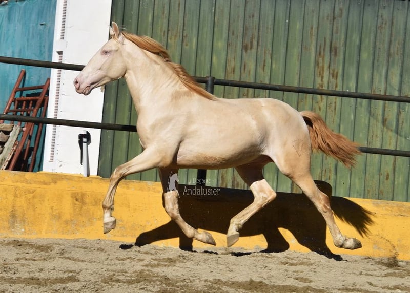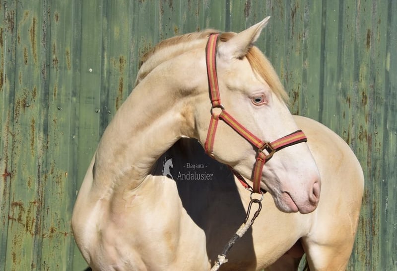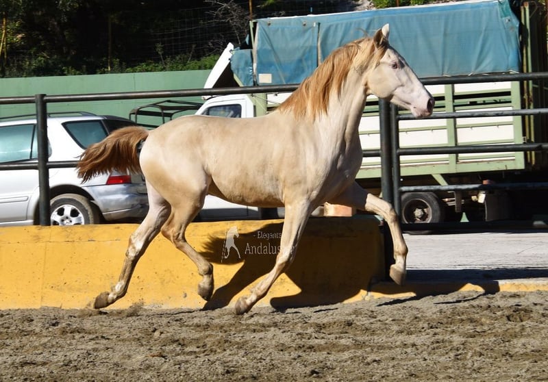 Dear character, raw, tall, good movements, special color, Perlino with PRE registration, pedigree: Yeguada Cambra Royo, Yeguada los Pasos, Hito Gonzalez Beltran www.elegante-andalusier.com