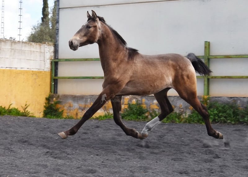 gentle character, untrained, stands outside with other young stallions, good movements and lineage, special color, PRE dun with papers, lineage: Alfredo Gala, Pablo Perez Jimenez, Miura, los Retamales, has several qualified ancestors www.elegante-andalusier.com
