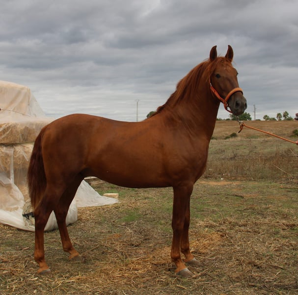 Isgleto est vraiment un véritable eye-catcher, incarnant le type traditionnel du PRE ancien : compact, puissant et élégant. Ce jeune mâle est né en juin et a fêté ses deux ans. Il possède une documentation complète de l'ANCCE, ce qui le rend également très intéressant pour la reproduction. Il est manipulé avec un licol, connaît la mise en place, le parage et le travail à la longe. Si vous cherchez un diamant brut à polir vous-même, Isgleto est fait pour vous. En main, c’est un vrai trésor, naturellement avec quelques espiègleries dans la tête, comme c’est le cas pour les jeunes étalons, mais toujours facile à manipuler et bien élevé. Un contrôle vétérinaire peut être ordonné. Le transport sera organisé à l’international. Vidéos sur demande.