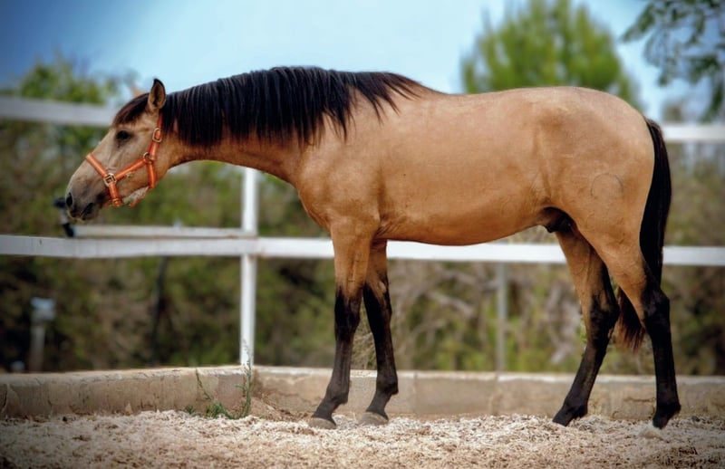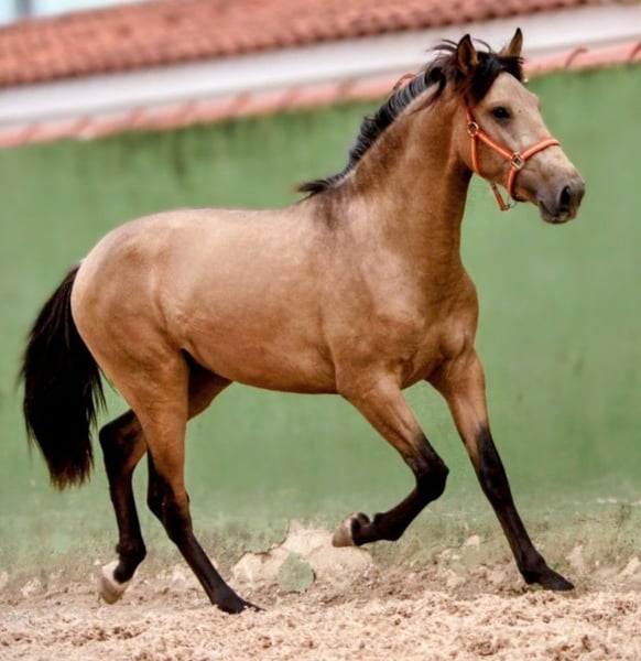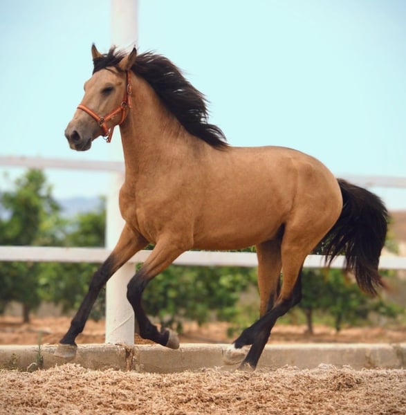 KAFKIANO... an impressively beautiful and young PRE buckskin stallion is looking for his FOREVER HOME. He is being raised in a loving and private environment. He is in the desirable special color buckskin and has full papers from the ANCCE. Handling him is easy and trouble-free. Due to his age, he is of course still untrained, but he walks wonderfully on a halter. Therefore, walks are no problem. Currently, he stands at 1.59 m and is expected to reach a final height of about 1.63 m. At 30 months old, he is now at the age where he can be gently introduced to his training. He has already been lunged a few times and has a very good basic education. He picks up all his hooves and has no issues with the farrier. If you like this super beautiful young prince, please contact me with your phone number so I can get in touch with you as soon as possible.