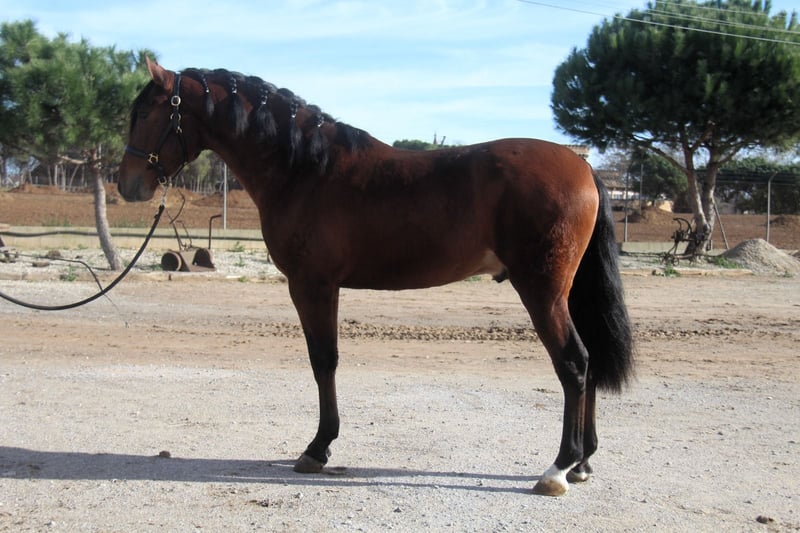 Ce magnifique étalon PRE recherche son humain de cœur. Avec son charisme à couper le souffle, son beau physique et ses allures élégantes, il ne passe pas inaperçu — et son tempérament exceptionnel ne fait que renforcer son charme. Où qu'il aille, il laisse une impression durable. Sur le plan du caractère, il se montre comme un véritable gentleman : très doux, poli, proche de l'humain et toujours curieux. Âgé de 3 ans, il mesure actuellement environ 1,67 m. Nous estimons sa taille finale à environ 1,69–1,70 m, ce qui le rend également très intéressant pour des cavaliers de grande taille. Sorti tout juste de son troupeau de jeunes mâles, il possède déjà de solides bases. Il connaît bien le vocabulaire du poulain, ainsi que le travail en main et le longeage, qu'il accepte calmement et docilement. Il est actuellement préparé en douceur à l'apprentissage monté. Grâce à son tempérament équilibré et à la qualité de ses mouvements, nous pouvons l'imaginer dans diverses disciplines — que ce soit en dressage, en équitation de travail, pour des spectacles, en élevage ou simplement comme compagnon de loisir fidèle. Il a grandi dans un grand troupeau composé de juments et de poulains en pâture, puis, vers 8 mois, il a été intégré dans un troupeau de jeunes mâles, où il a pu développer ses compétences sociales de façon optimale. Il est désormais en pension et connaît également la vie en box sans problème. Les radiographies sont déjà disponibles et n'ont révélé aucune anomalie. Sur demande, il peut être castré sur place, afin qu'il puisse rejoindre sa nouvelle famille en tant que hongre. Il est également possible qu'il reste encore quelques mois chez nous, où il sera doucement monté. Bien entendu, il peut être visité à tout moment durant cette période. 📍 Localisation : Barcelone, Espagne Une rencontre en personne est possible à tout moment. Le transport peut être organisé facilement.