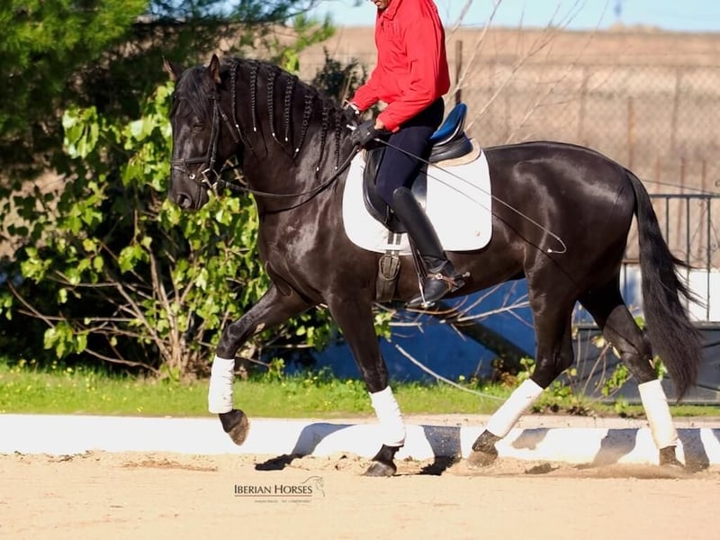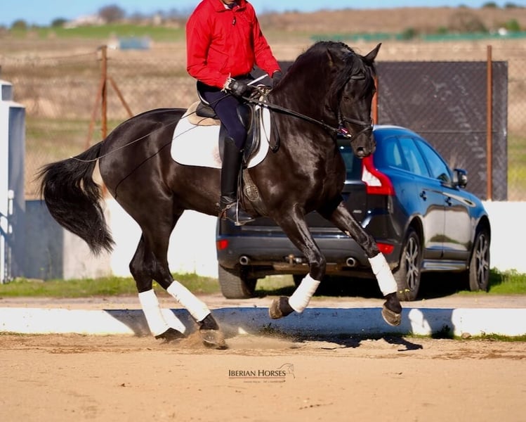 We present a magnificent Pure Spanish Horse (PRE) born in 2022, currently standing at 165 cm, and offering all the qualities sought by both demanding riders and professionals. He comes from the prestigious Valdeolivas bloodline, one of the most highly regarded within the modern PRE for consistently producing horses with harmonious conformation, excellent functionality, and expressive, uphill movements. His pedigree is a real guarantee of quality: he is sired by Filántropo de Valdeolivas and out of a mare by Trovador de Valdeolivas, two foundational stallions known for transmitting strength in the back, quality gaits, and natural elegance. This young horse has a stunning, deep black coat, elegant, eye-catching, and highly desirable among horses of this level. In terms of temperament, he stands out for his noble, willing, and cooperative character. With only two months under saddle, he already shows remarkable balance, confidence, and ease, making him suitable for riders with moderate experience, even if they are not professionals. He responds calmly, accepts the aids well, and always maintains a positive attitude. Regarding health guarantees, he comes with full X-rays available and is piro-negative, an essential requirement for export or competition plans. Altogether, he is a young PRE with excellent lineage, great potential, outstanding beauty, and an exemplary temperament, a rare opportunity in today’s market.